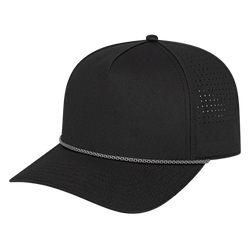 Our i3056 combines elevated style and performance with laser-cut perforations, a quick-dry sweatband, and bold rope accent. A polished look that moves easily from tee box to mountain trail, and everywhere in between. The mid profile five panel structured cap with a standard modified flat visor, polyester fabric with perforated sides & back, rope accent, and a quick-dry sweatband with adjustable snapback closure.